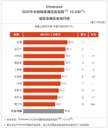 同時,Chnbrand今年首次將藝術漆納入評價范圍,大寶漆以總分90.5登頂“藝術漆滿意度排行榜”榜首。