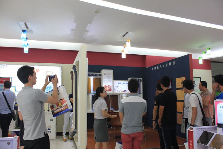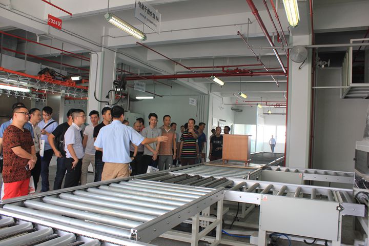 在大寶化工工作人員的陪同下,青家協(xié)一行先后參觀了中央實(shí)驗(yàn)室、4C元素店、智能涂裝測(cè)試線、色板中心、后花園和安管中心。在色板中心參觀時(shí),家具企業(yè)家們紛紛慨嘆大寶漆精湛的施工工藝和優(yōu)越的品質(zhì),表示對(duì)大寶漆早有耳聞,今日一見(jiàn),更是加強(qiáng)了與大寶漆合作的意念。